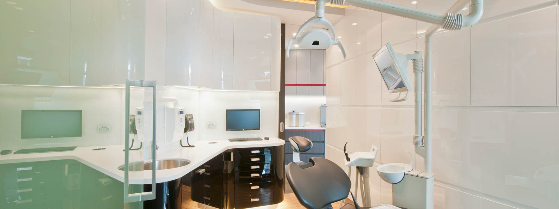 The Rose Bay dental practice was the third successful fitout produced for this doctor/practice. The first fitout was a small two chair practice in Newtown and the second was a much larger commercial business in Hurstville. The Rose Bay fit-out represented a luxury “downsize” for the doctor back to a small two chair shopfront practice. But that didn’t limit the brief in terms of what the tiny space had to achieve. The Client wanted the fitout to emulate his love of streamline 1930’s cars and architecture.