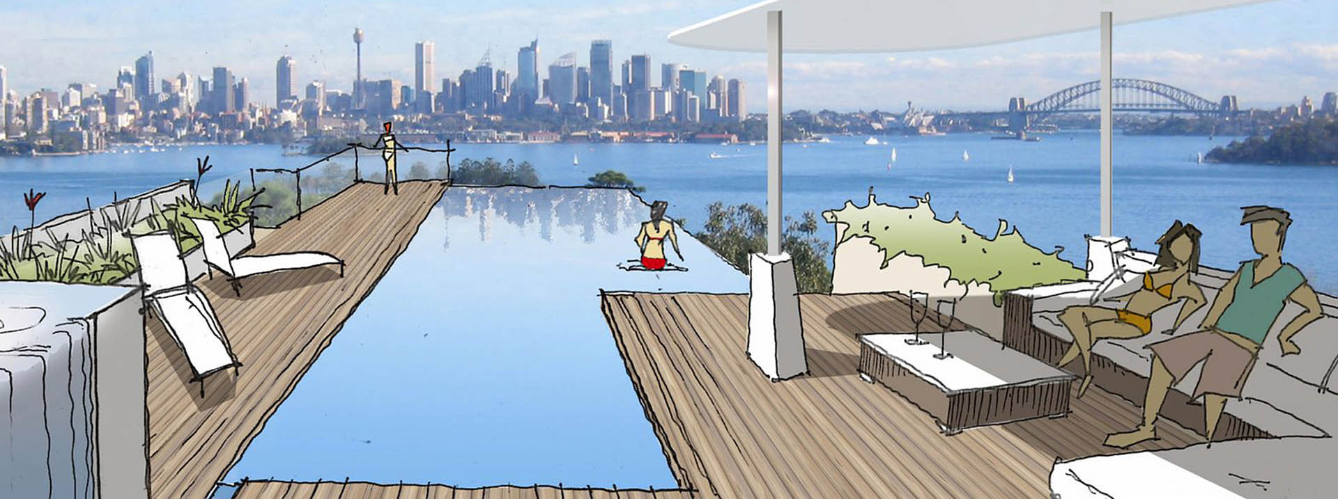 Concepts developed for the alteration and addition to an original Guildford-Bell residence, overlooking the length of the harbour from its Vaucluse hilltop. These concepts were undertaken as a competition-style forum together with Tzannes Associates, who ultimately went on to develop the building.