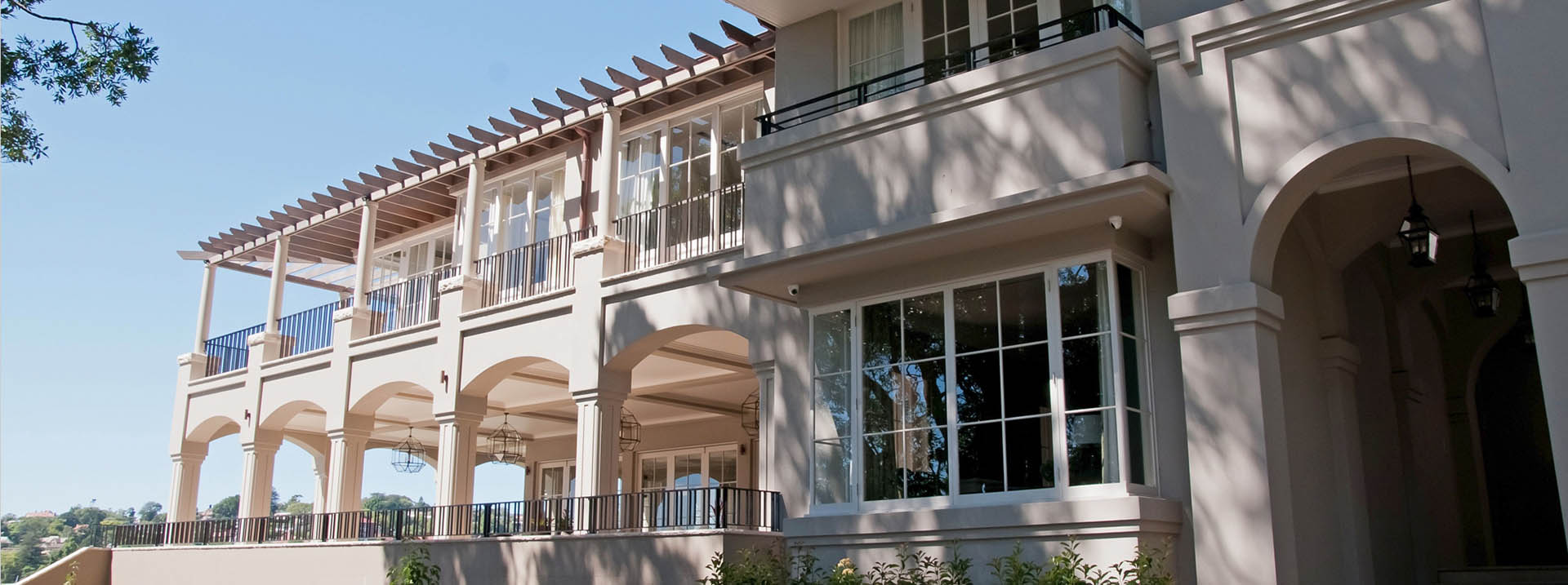 This Eastern Suburbs waterfront home is a modern building with a traditional appearance, using detail and finishes that respect the adjoining heritage property of Carthona.